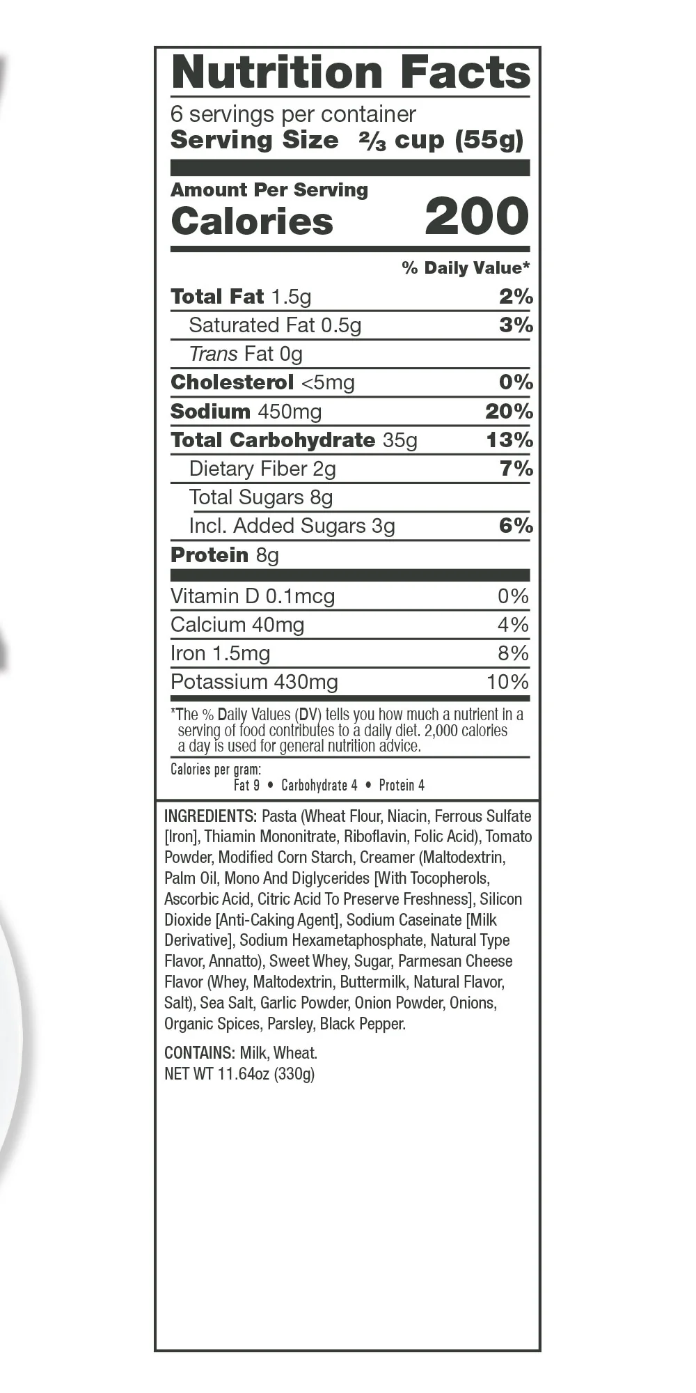 - 2 pouches of Pasta Alfredo (8 total servings)