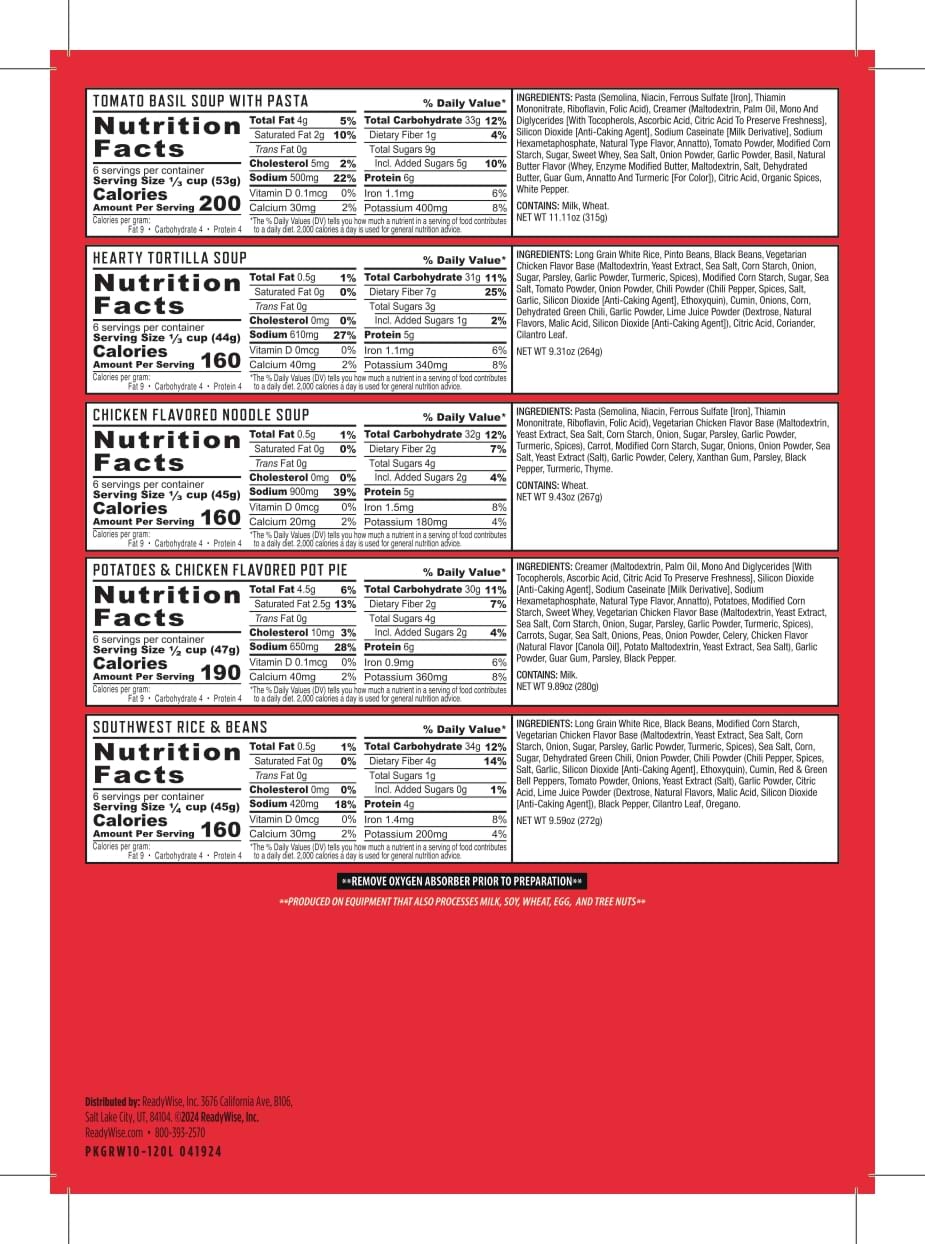 - 1 pouch of Tomato Basil Soup with Pasta (6 total servings)